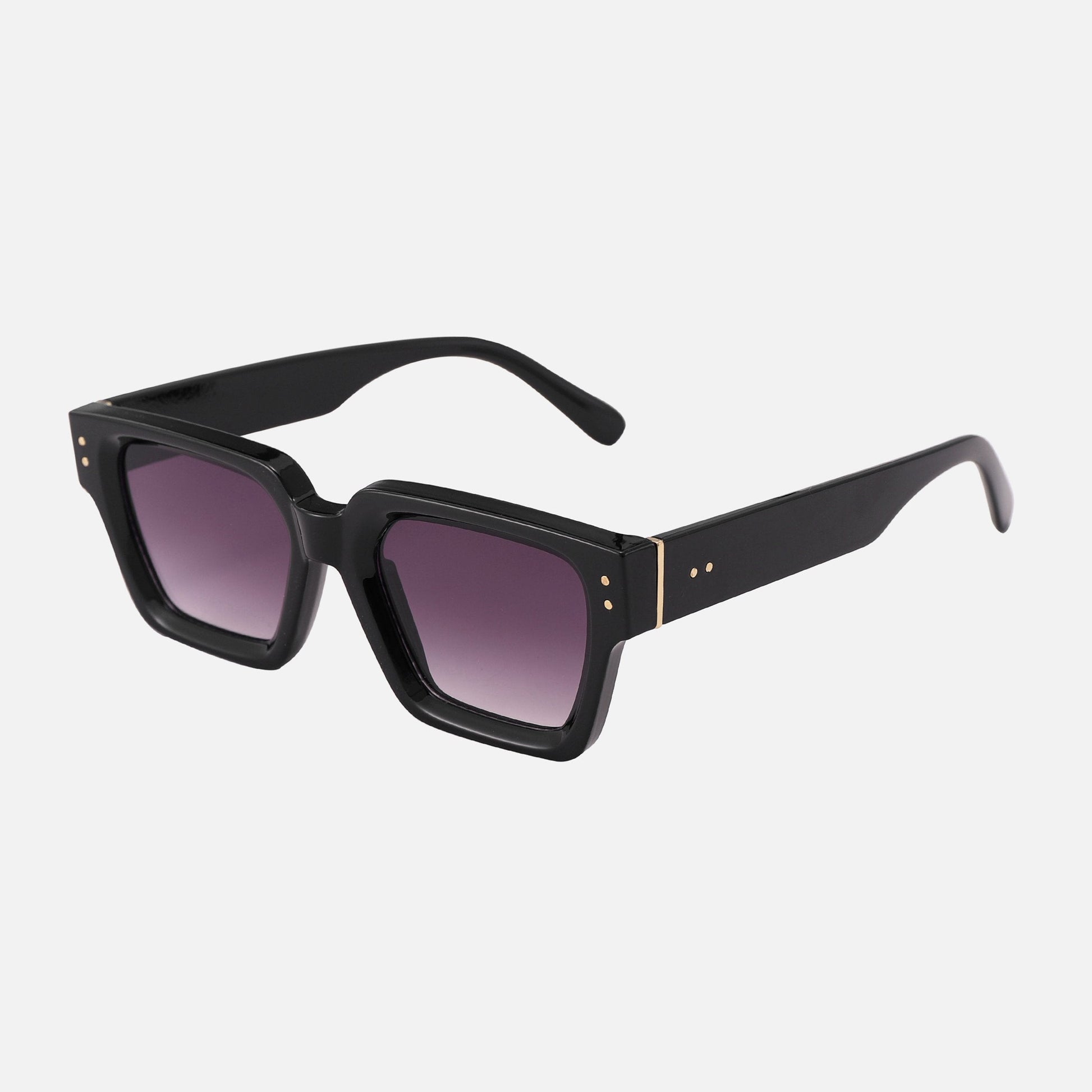 Direto da nossa coleção mais recente. Esses óculos de sol apresentam uma armação quadrada marcante com lentes escuras e discretos detalhes dourados. Seu design sólido oferece um visual clássico e atemporal com um toque moderno.